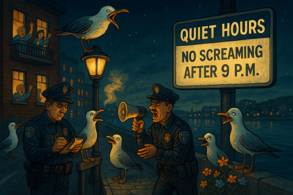 Minister Reginald McQuibble stated: “We’re not silencing gulls forever—just asking them to respect bedtime. If toddlers can manage it, so can birds.”