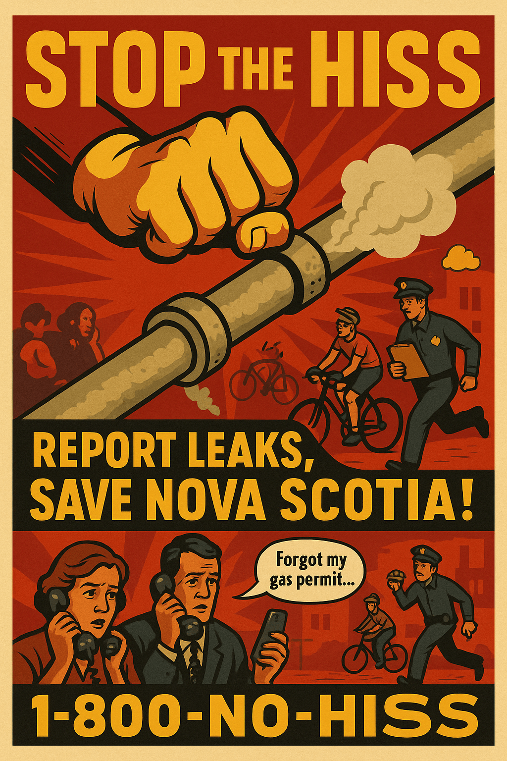 Halifax, Nova Scotia — In a landmark move hailed as “the biggest clampdown since the great bean shortage of ’82,” the Province of Nova Scotia has declared all gas leaks illegal. This sweeping ban covers industrial pipelines, household burps, barnyard eruptions, and even bicycles caught hissing without a license.