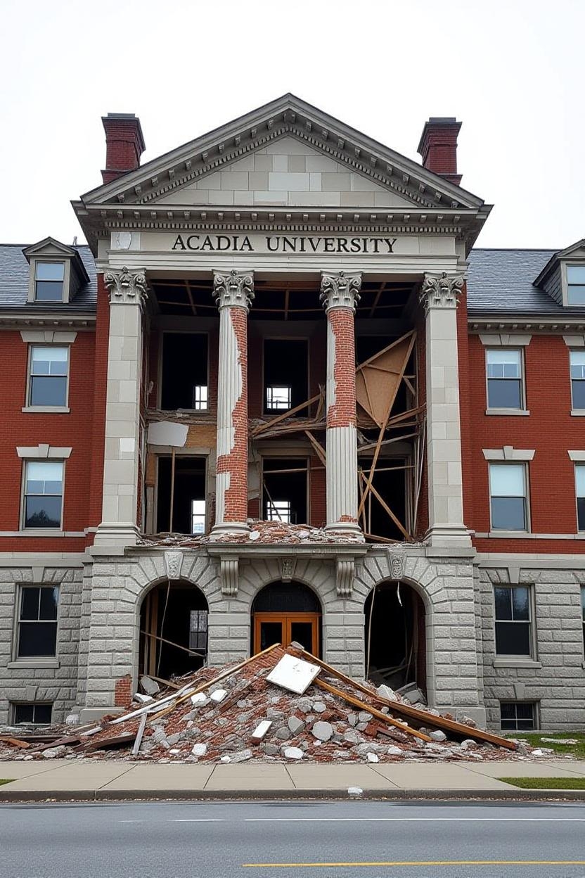 “The votes are in. The university with the fewest supporters must bring me its gown and walk out. Remember: in Nova Scotia, tuition is higher than the Cabot Trail cliffs, but only the strongest campuses will survive.”