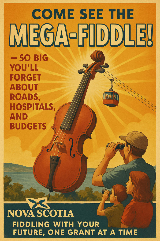 SYDNEY — Nova Scotia has announced plans for a fiddle so large it will be visible from Kelly’s Mountain on a clear day (expected to be twice per year, weather permitting).