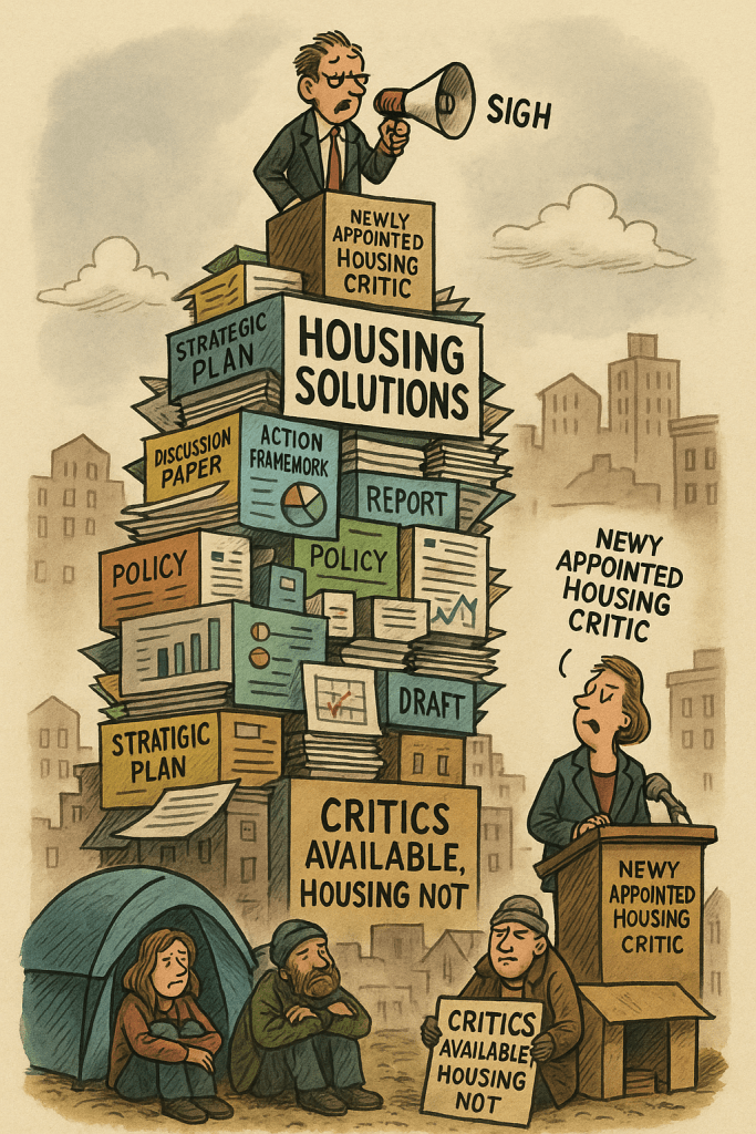 I see you’ve appointed a new Housing Critic. Wonderful. We now have more critics than available apartments. Perhaps the critics could start renting themselves out? At least then someone would find a place to live.